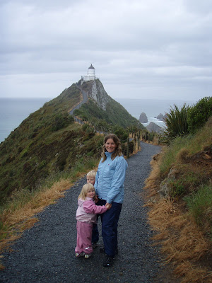 Ved Nugget Point travede vi igen tur af bjergsiden – oftest uden afspærring.Stejlt og langt ned. Ungerne var nu eksemplariske. Vi gik ud til et skønt gammel fyrtårn, som ligenede Rasmus Klumps Fyrtårn. Flot udsigt. Tydeligt at se, hvordan vandet slider på klipperne og former dem. Masser af søløver og havfugle i vandet. Vi mindedes den søløve, vi krammede i Cirkus Benneweis hjemme i KBH. Den var sød, men glat, våd og lugtede af fisk. På vej ud til fyrtårnet stoppede vi ved udsigtspunkt med observationsstade, hvorfra vi så pingvinerne. Herfra så Nicolai de første søløver – og på utrolig lang afstand.