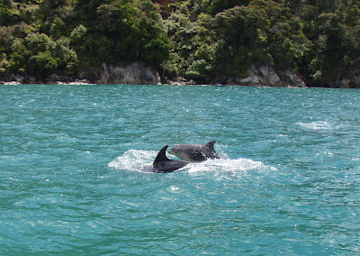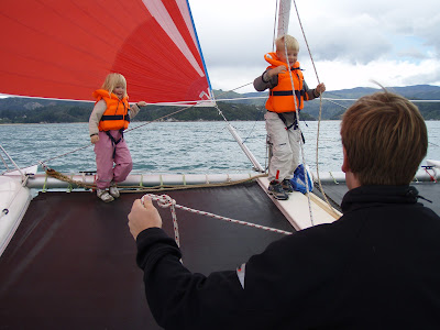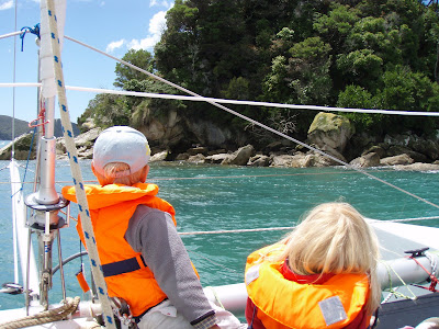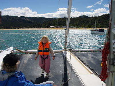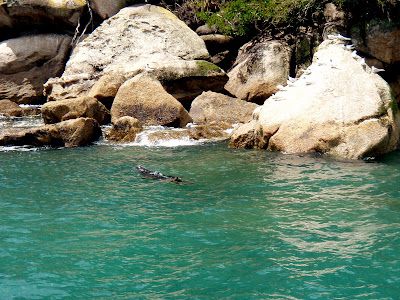 Vi sejlede på katamaranen hele dagen med en sød bedstemor fra Colorado, som rejste alene og tre piger fra et rejseselskab, hvor man i bus kører 14 unge rundt i USA, NZ etc. Den ene af dem var en sej dansk pige fra Sindal i Nordjylland. Det øsregnede, da vi stod op, så mange havde aflyst. Det betød, at dem af os som trodsede regnen og virkelig ville afsted, fik en super dag, med få skibe i området, næsten ingen mennesker på den lille strand, hvor vi spiste frokost, masser af dyreliv etc. – og ikke mere regnvejr i løbet af dagen, omend vi skiftede tøjet mange gange, fordi det blev koldt/varmt.