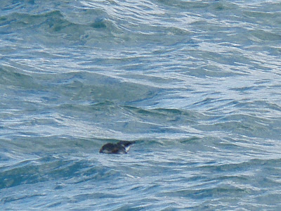 En lille blå pingvin svømmede rundt nogle hundrede meter ude i vandet ud for Abel Tasman National Park, da vi kom sejlende langs kysten. Den så lille ud derude alene.