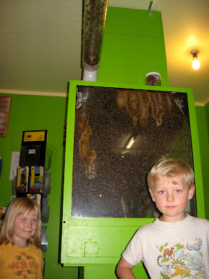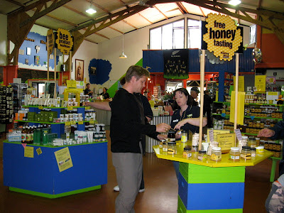 Lige nord for Taupo på vej til Rotoroa nåede vi endda også at besøge et sted, hvor man kunne se, hvordan bierne laver honning. Det gør de virkelig meget i her. Overalt kan man besøge den lokale biavler, smage på honningen og købe lidt. Bare sådan når man nu kører forbi.
