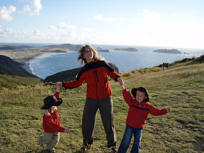 Cape Reinga er det nordligste (tilgængelige) punkt på nordøen. Her er bjerge. Sandklitter. Hav. Fyrtårn. Vejskilt med afstandene 18029 km til London og 6221 km til Sydpolen. Flot. Vi nød solnedgangen. Maorierne siger, at deres gamle går herop og ud i vandet for at dø. De går ned i vandet her for at sejle af sted, men kigger sig lige tilbage ved den næste pynt, inden de endelig tager afsted.