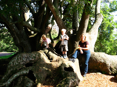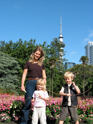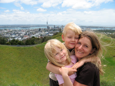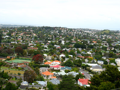 Aukland er bygget på 60 vulkaner. De fleste er jævnet og brugt til byggematerialer. En del er stadig aktive… spændende. Nogle stykker kan man tage op på. Den højeste vulkan er Mount Eden med et flot 50 m dybt krater i toppen. Herfra er udsigten over byen imponerende. Vi genser tårnet, vi var oppe i igår. Byen strækker sig over et enormt område, fordi man her – som i Danmark – foretrækker at bo tæt på jorden med have omkring sig, så villakvarterene er uendelige. Legepladsen ved foden af vulkanen havde en super svævebane.