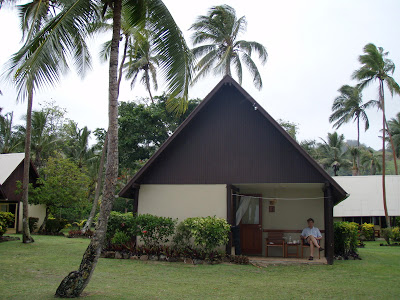 Ankomsten til resortet Tambua Sands Beach Resort Fiji på Coral Coast på hovedøen var til gengæld skøn. Søde smilende mennesker, som alle kom hen og gav hånd og præsenterede sig med fornavn, spurgte til vores navne – og rent faktisk lærte dem. En dejlig stemning. Vi havde