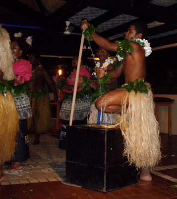 Underholdningen om aftenen på resortet har været herlig. Senest var vi med ude og danse Meke. Krigerne var seje. Kvinderne store og hjertelige. Blomsterkransene manglede heller ikke. Orkestret havde en kontrabas med, der fik Christian til at tænke på Henriks kontrabas Vera fra Ræs’s Jazzband.
