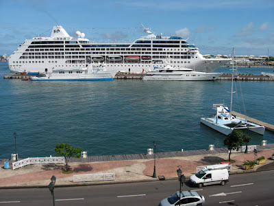 Papeete lever vist af krydstogsskibeog andre turister – da vi vågnede den første morgen var havnen blevet “invaderet” – udsigten er fra vores terrasse. I udkanten af byen ligger store luksusresorts uden meget udenom. Havnen, hvor Maersk containerne undtagelsvist blot er mindre repræsenteret end tidligere, men de er her stadig. Store katemaraner. Små udriggerkanoer i massevis.