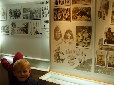 Bymuseet hedder Museet ved verdens ende 🙂 Det handler meget passende om skibsforlis ved Kap Horn, om pingviner og andre havfugle, og om de oprindelige indianere. Indianerne uddøde i løbet af 100 år… trist. Der skulle være en 80 årig dame i en lille by tilbage. Ellers bukkede de under for sygdomme, blev myrdet for at tilflytterne kunne få adgang til sælkolonierne, mistede deres eksistensgrundlag da sælerne i stigende grad blev jagtet, og kunne heller ikke tilpasse sig missionærernes påud om, at de skulle have tøj på. Ja tilsyneladende brugte de ikke tøj, men bål og sælfedt… lidt svært at tro med den kulde, der er her.