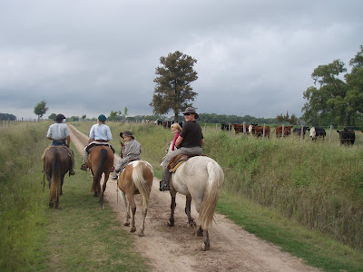 Tre dage med ridning på skønne heste ind over markerne med kvæg på en ranch, der lever af kvæg, marked med soyabønner, hesteopdræt og turister som os. Rideturene var skønne. 1,5 time hver gang ud over marker og bække og gennem skov. Nicolai startede med at ride sammen med den smukke og seje kvindelige gaucho Edith (hvilket en del af mændene misundte ham), men efter en enkelt tur fik han sin helt egen hest. Det var altså sejt. En rigtig indianerhest. Edith havde fat i Nicolais hest med et reb, og så klarede han det ellers selv. Han har sågar prøvet at trave et par gange, hvor vi andre så ham hoppe op og ned klukleende. Lærke red med Christian og havde lige fået lov at få sin egen hest, da et gigantisk torden og regnvejr gjorde, at den sidste tur blev aflyst. Gauchoerne viste ringridning og hvordan de arbejder med hestene.