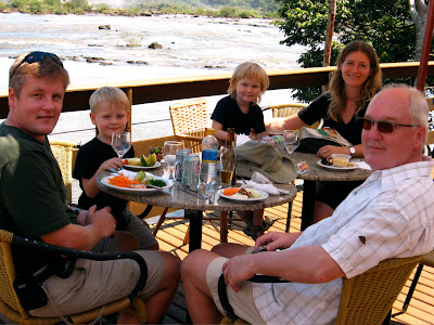 Vi spiste frokost lige ud til floden ovenfor faldet. Der var sommerfugle overalt, her og i skoven. Børnene synes klart, at de var det mest spændende, fordi de satte sig på hænder, hatte…