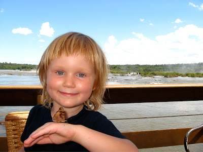 Der er bygget en platform ud i vandfaldet. Det giver en spektakulær udsigt. Regnbuen var lang og flot. Vandet var roligt lige indtil kanten og så faldt det ellers 15 m dybere end ved Niagra … masser af vanddamp, drøn og utroligt umponerende.