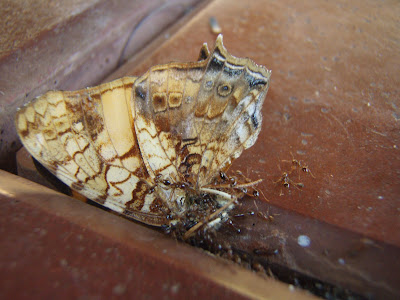 Kryb er der naturligvis også her. Mettes farmor – oldemor Minna – og Lene ville absolut ikke have syntes om dem. Vi har set pudsige orme med lange stride hår, der lignede hvidt skæg. En edderkop, der havde fanget en myre og var ved at spinde den ind i en lille pakke. En flok myrer, der havde fundet en død sommerfugl og var ved at bugsere den ned i deres bo. Masser af biller, natsværmere, firben mm.