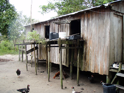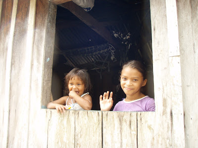 Vi besøgte en hel lille landsby…der viste sig at være i familie med hinanden alle sammen. En mand havde fået 10 børn, de var blevet gift og havde fået børn og vist også børnebørn. Nu boede der ca. 90 mennesker i en række huse ved siden af hinanden langs floden. De fleste var børn, og vi så ingen ældre mennesker, så det var meget forskelligt fra aldersfordelingen og størrelsen af en dansk familie. Amazon Village, hvor vi boede, havde ansat adskillige fra familien, og tilgengæld fældede de så ikke træer i området. Børnene var også her utroligt søde, smilende og nysgerrige.