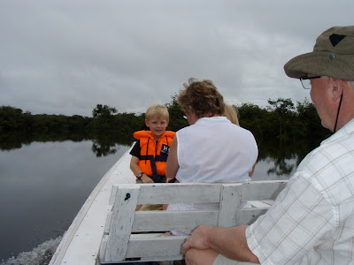 Vi sejlede igennem de oversvømmede skove på vejen ind til landsbyen. Det var lige flot og fascinerende hver gang. Ofte var skoven under vandet så tæt, at piskeris-motoren næsten ikke kunne få os igennem, og vi måtte da også tilbage en enkelt gang og finde en anden vej.